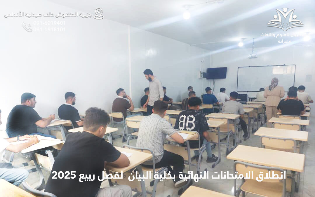 بحمد الله وتوفيقه، انطلقت اليوم السبت الموافق 14 يونيو 2025م الامتحانات النهائية للفصل الدراسي ربيع 2025م بكلية البيان للعلوم واللغات، وسط أجواء يسودها الانضباط والالتزام من قبل الطلبة والكادر الأكاديمي والإداري.